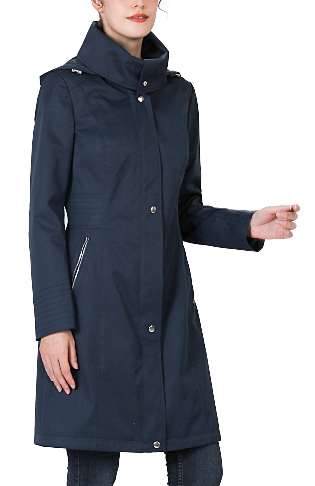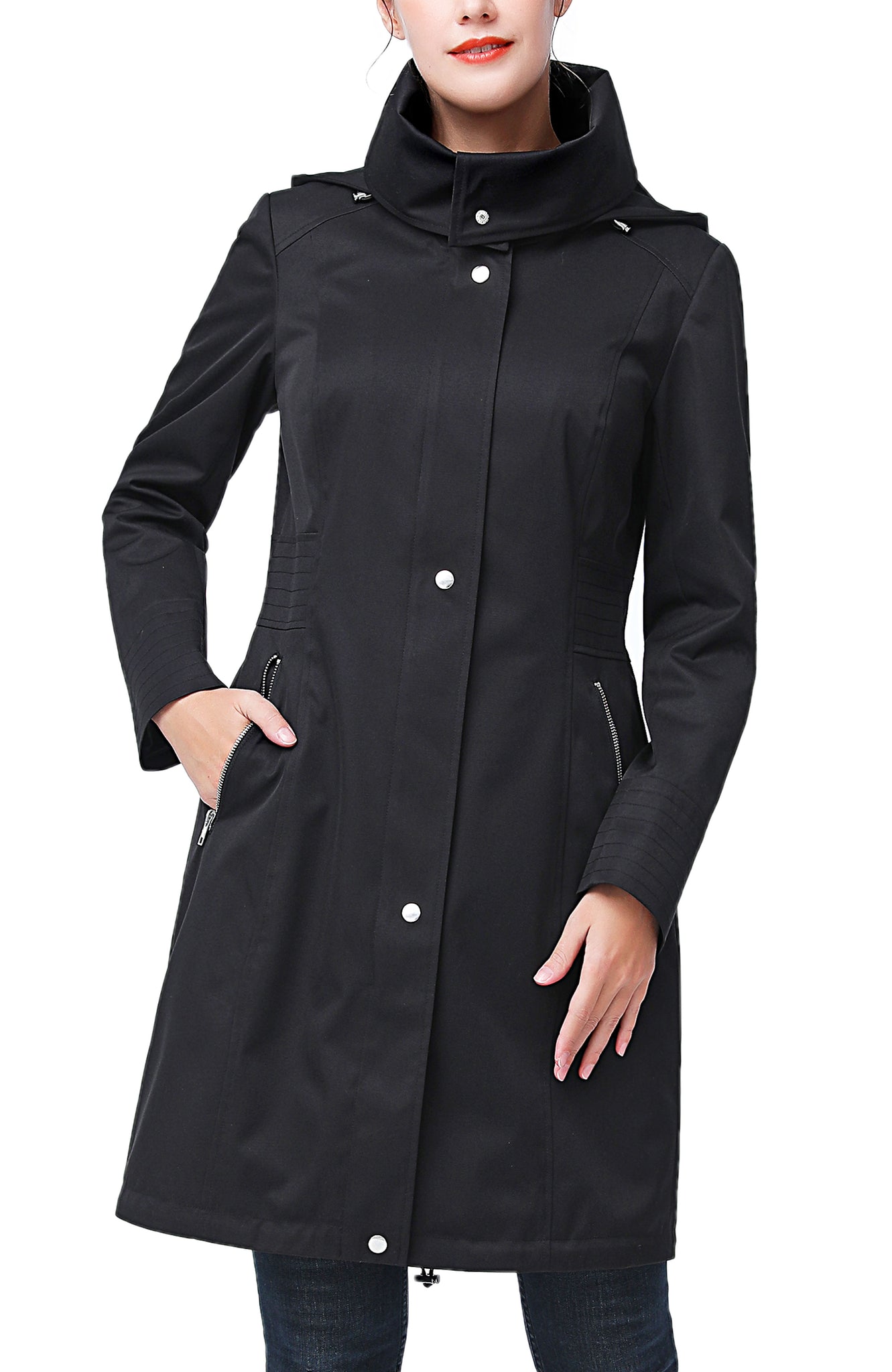 - Removable hood with high stand collar for versatile coverage