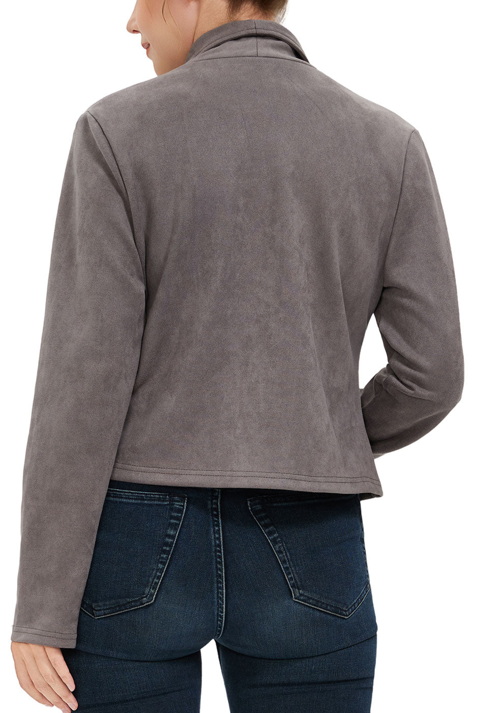 Effortlessly chic and endlessly versatile, the Women's Faux Suede Open Front Jacket brings a polished layer to your everyday wardrobe. The soft faux suede finish adds a luxurious touch, while long sleeves and two functional zipper pockets provide practicality and style. Whether paired with jeans, trousers, or dresses, this lightweight jacket is the perfect transitional piece for day or night.