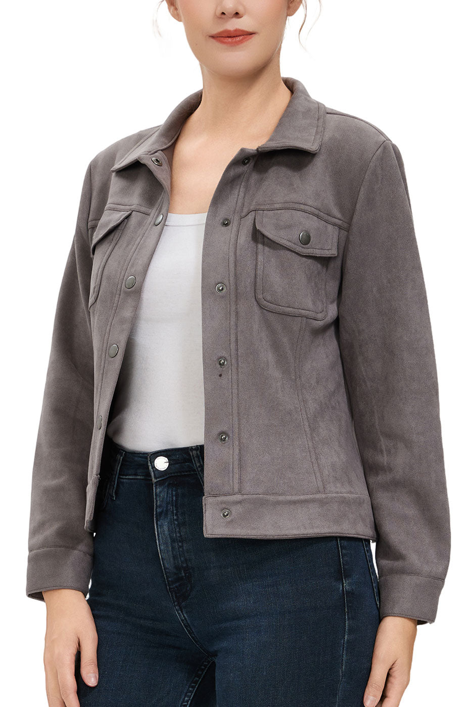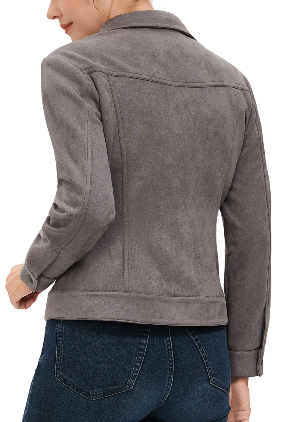 Classic with a modern twist, the Women's Faux Suede Trucker Jacket offers timeless style in a soft, elevated fabrication. Whether you're dressing up denim or softening an edgy look, this trucker jacket brings casual sophistication to your wardrobe.